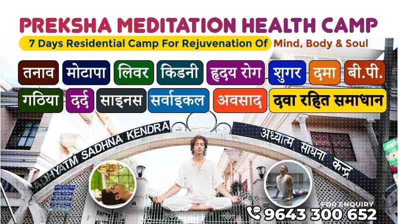 के.सी. जैन, निदेशक, अध्यात्म साधना केंद्र, के मार्गदर्शन में यहाँ 30 दिन का विशेष आवासीय शिविर आयोजित किया जाता है। इस शिविर में प्राकृतिक चिकित्सा, योग, ध्यान और विशेष आहार का समन्वय किया जाता है। यहाँ के उपचारों ने कई रोगियों को दवाइयों पर निर्भरता कम करने और उनके स्वास्थ्य में उल्लेखनीय सुधार लाने में मदद की है। यह शिविर रोगियों को शारीरिक और मानसिक रूप से सशक्त बनाने पर केंद्रित है।
