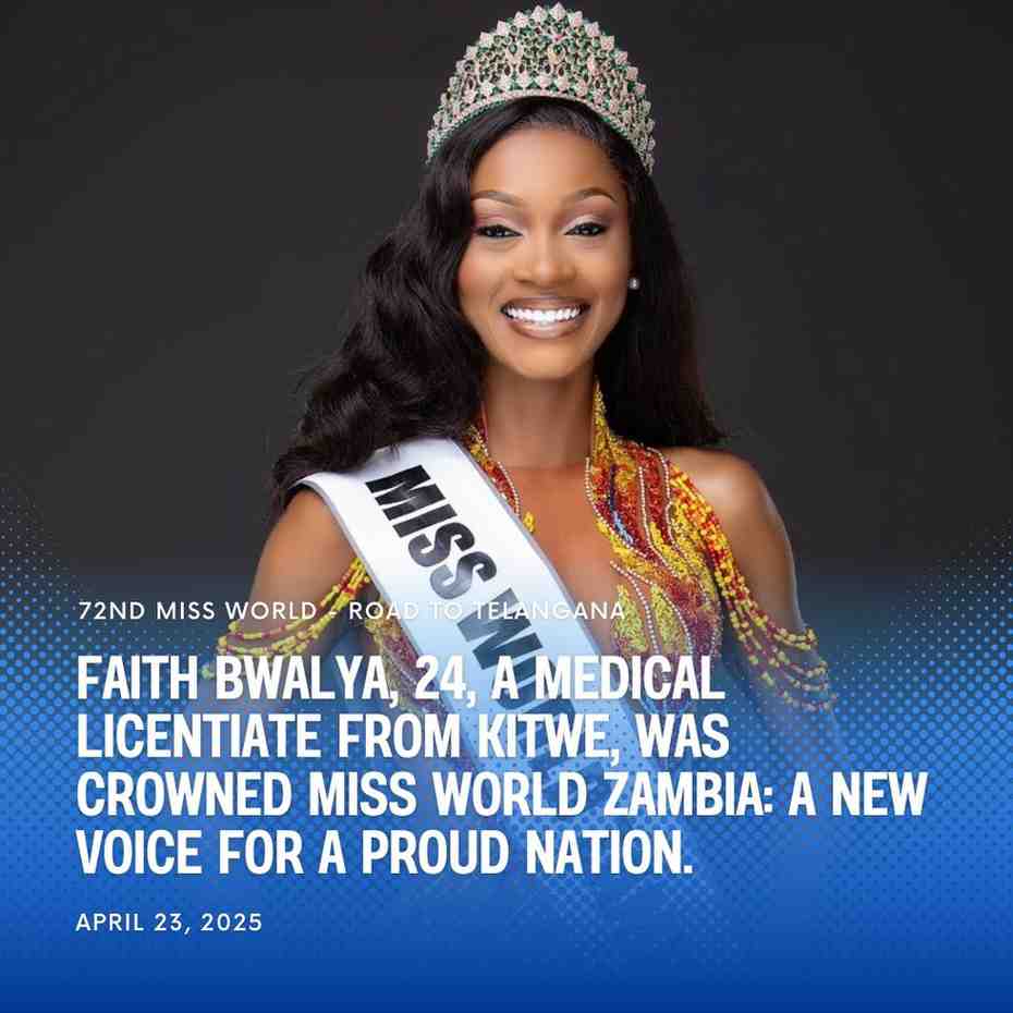 फैथ बवाल्या का सौंदर्य प्रतियोगिताओं में सफर शानदार रहा है। उन्होंने 2014 में मिस रुफुंसा गर्ल्स टेक्निकल स्कूल का खिताब जीता और 2023 में मिस लुमिएर जाम्बिया का ताज अपने नाम किया। वह मिस लुमिएर इंटरनेशनल वर्ल्ड 2023 में प्रथम रनर-अप रहीं। इसके अलावा, उन्होंने 2024 में टॉप मॉडल ऑफ द वर्ल्ड जाम्बिया का खिताब भी हासिल किया।