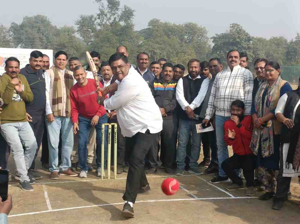 वन एवं पर्यावरण राज्य मंत्री (स्वतंत्र प्रभार) श्री संजय शर्मा ने रविवार को अलवर सांसद खेल उत्सव 2.0 के तहत आयोजित अलवर शहर विधानसभा कम्युनिटी क्रिकेट प्रतियोगिता का राजऋषि महाविद्यालय के खेल मैदान में शुभारंभ किया। मंत्री शर्मा ने बैटिंग कर प्रतियोगिता की शुरुआत की और टूर्नामेंट ट्रॉफी का विमोचन भी किया।